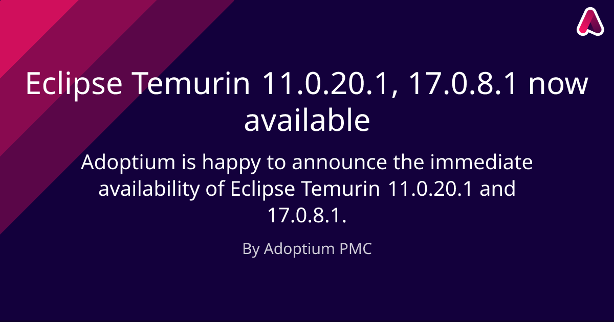 Adoptium is happy to announce the immediate availability of Eclipse Temurin 11.0.20.1 and 17.0.8.1.