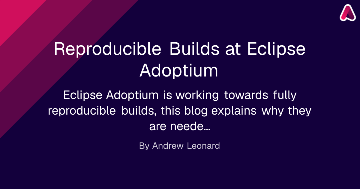 Eclipse Adoptium is working towards fully reproducible builds, this blog explains why they are needed and the work ongoing to achieve them.